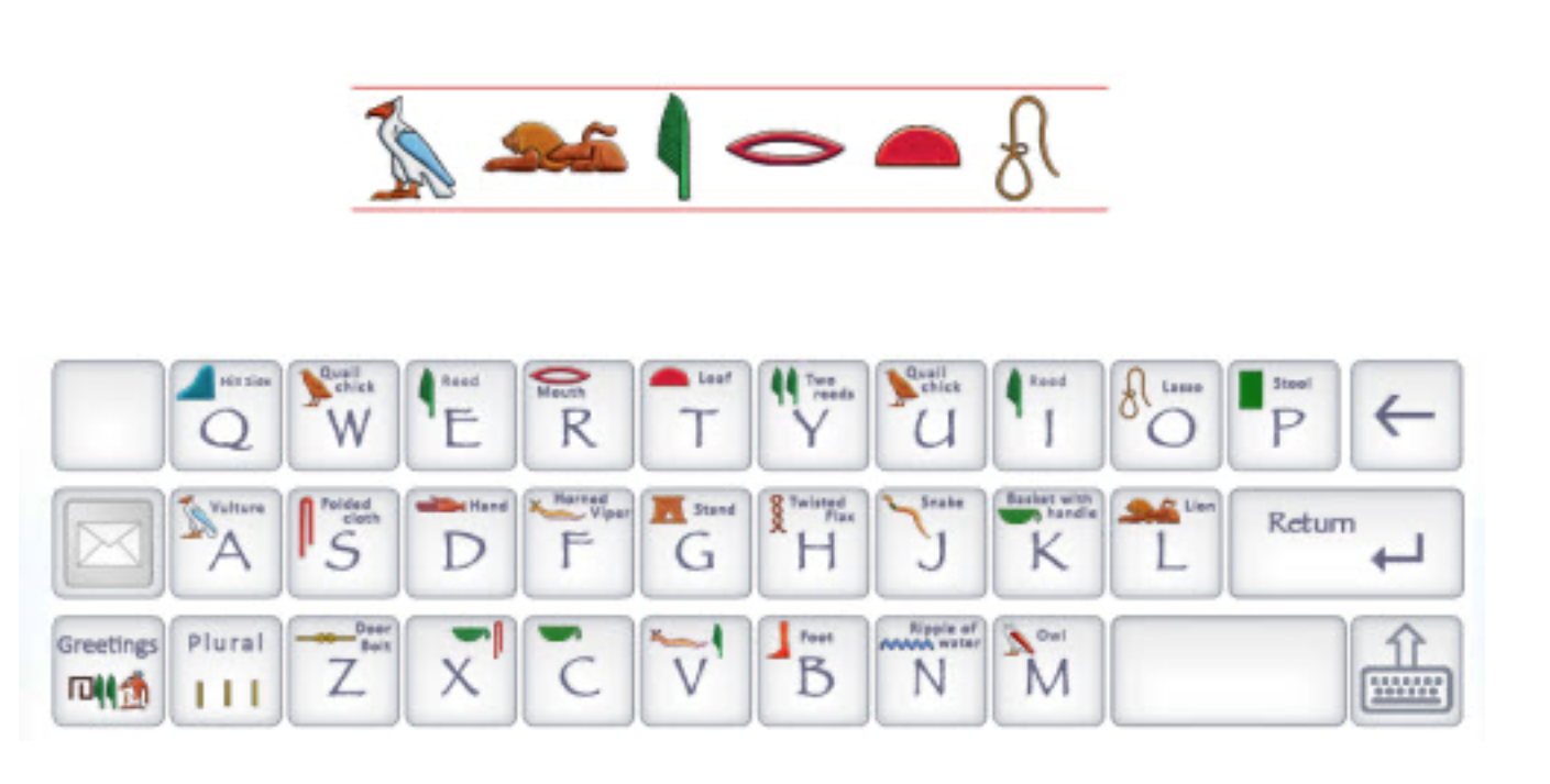 Lo strumento include anche numeri e simboli particolari e una mini guida che aiuta a digitare messaggi segreti usando proprio l’antica scrittura degli Egizi.